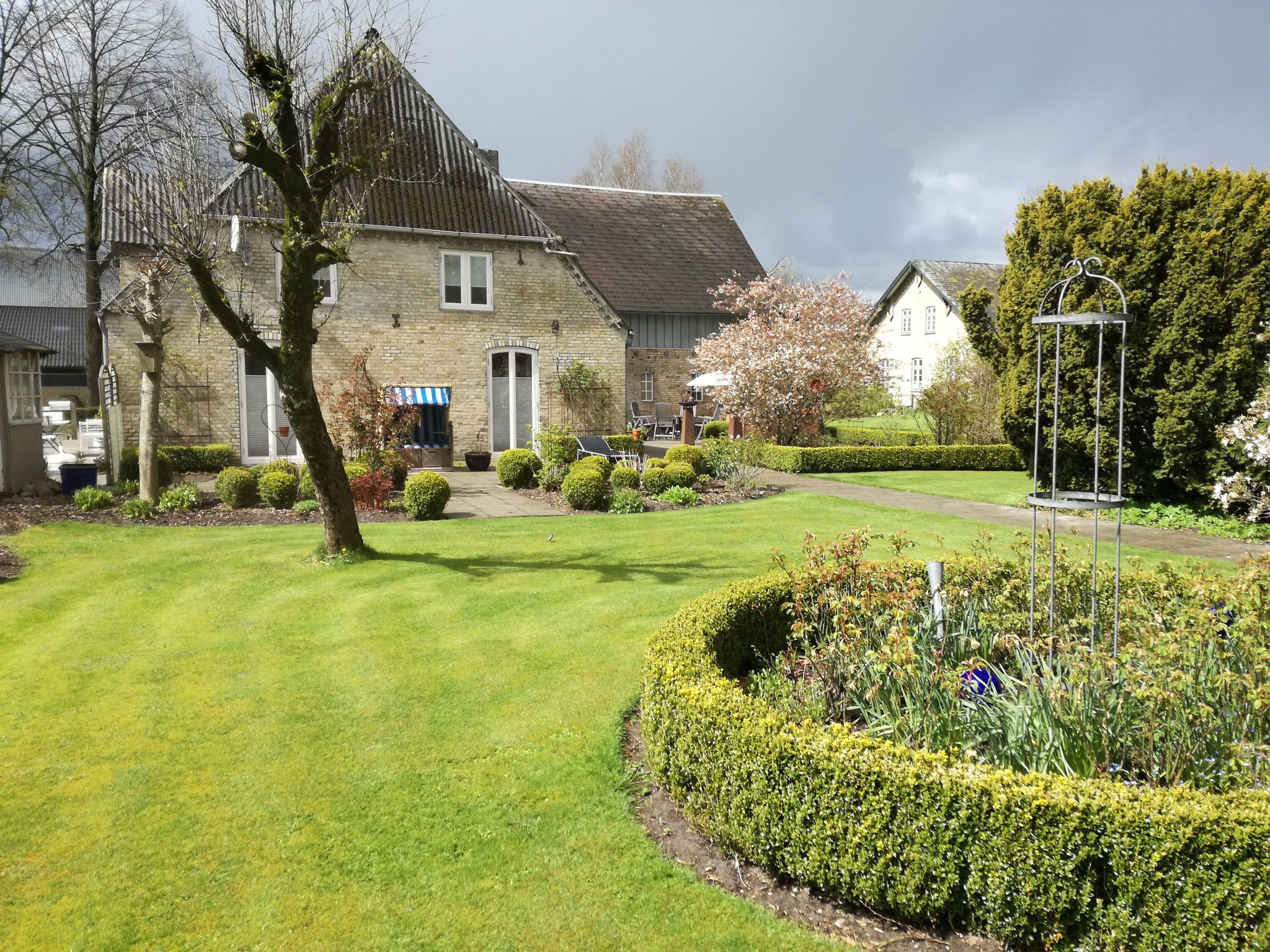 Eingebettet in einen gepflegten Landhausgarten bietet das Ferienhaus zwei Terrassen vor und hinter dem Haus – perfekt zum Entspannen in ruhiger, ländlicher Umgebung.