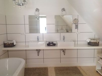 Das "Haus Friedrichsen" verfügt über mehrere moderne Badezimmer und bietet damit höchsten Komfort für Ihren Aufenthalt. Im Obergeschoss befindet sich ein großzügiges Wannenbad mit WC direkt neben dem Schlafzimmer – ideal für entspannte Auszeiten.