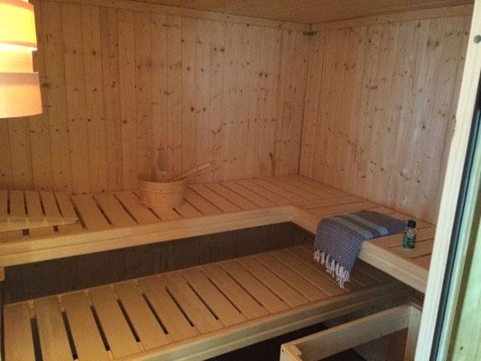 Die moderne Sauna bietet Platz für 2 bis maximal 4 Personen und kann kostenfrei genutzt werden – perfekt für erholsame Wellnessmomente im eigenen Ferienhaus.