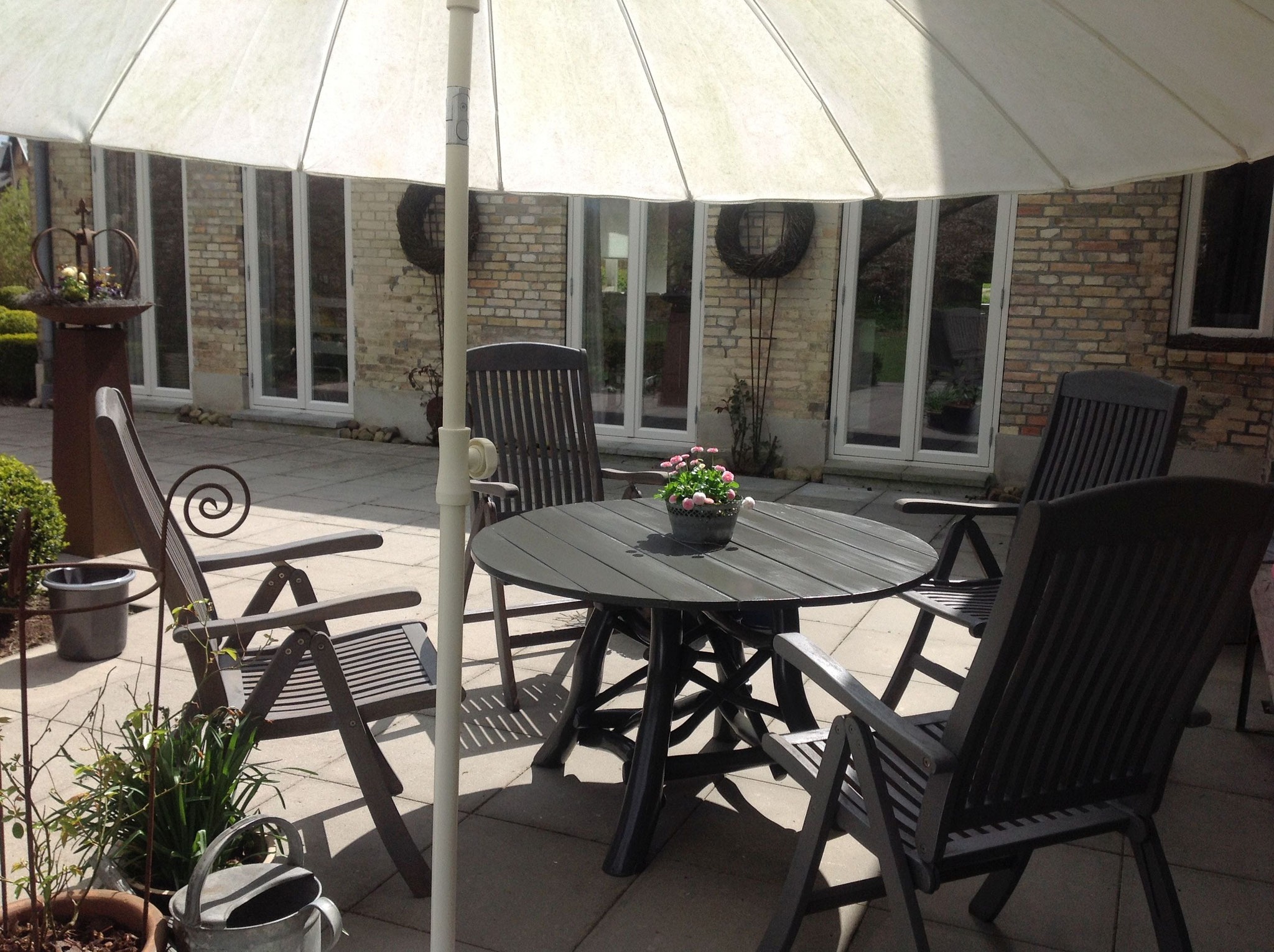 Eingebettet in einen gepflegten Landhausgarten bietet das Ferienhaus zwei Terrassen vor und hinter dem Haus – perfekt zum Entspannen in ruhiger, ländlicher Umgebung.